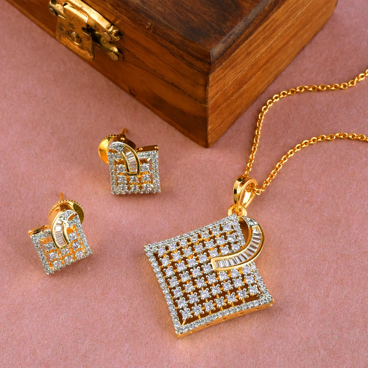 Zircon Diamond Studded Gold Plated Pendant Set with Chain
